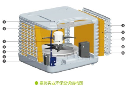 2. 外框為工程塑料壓制而成,5090/6090濕簾紙,濕簾紙采用進口樂泰膠水,耐水浸泡,不易脫膠塌陷腐爛使用壽命長,8年以上。3C認證鋁殼銅芯電機,強度大三葉扇葉,風量大,噪音小,方形工程塑料風管。