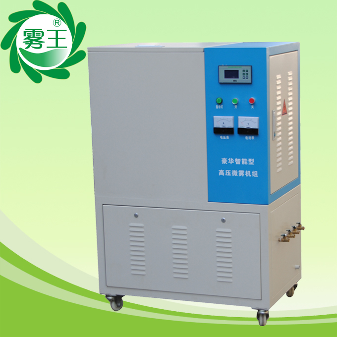 1、自動高壓噴霧加濕機組是由水過濾、水溫控制(選裝)、水位控制、恒壓供水、多管路輸水、智能儀表濕度控制等組成的機電一體化產品。自來水經過濾器送入水箱,水箱設有上下水位控制系統,并設有水溫加熱及溫度控制系統;凈化水進入高壓泵、高壓管路、噴嘴形成高壓噴霧系統,高壓水泵由電機驅動,智能儀表、濕度傳感器、高壓電磁閥組成濕度控制系統。